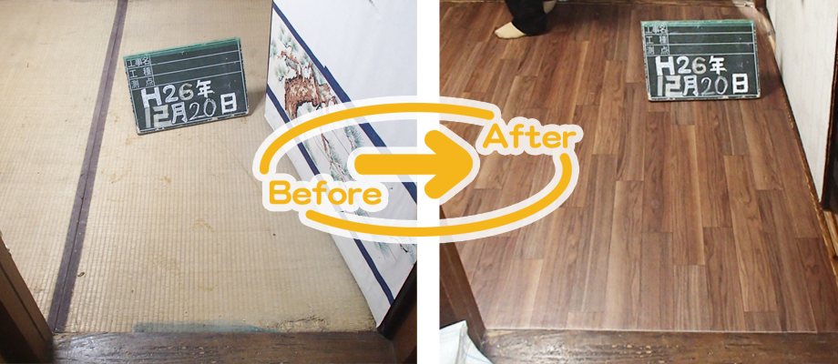 畳は畳の目や縁に引っかかったり滑ったりして転倒する危険性がある為、フローリングに変更する事で安全に移動ができます。また、車イスをご使用の方の移動にも有効です。