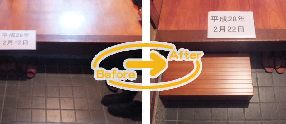 また、玄関の上がりかまちでは踏み台を設置する事で昇降が楽になったり、ドア等の敷居を撤去する事で小さな段差でのつまづきを防いだりします。